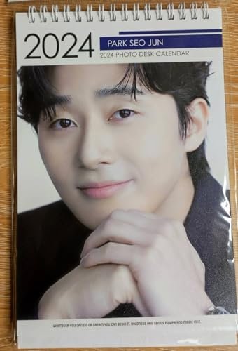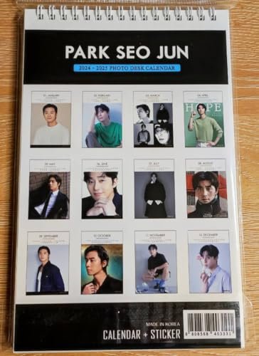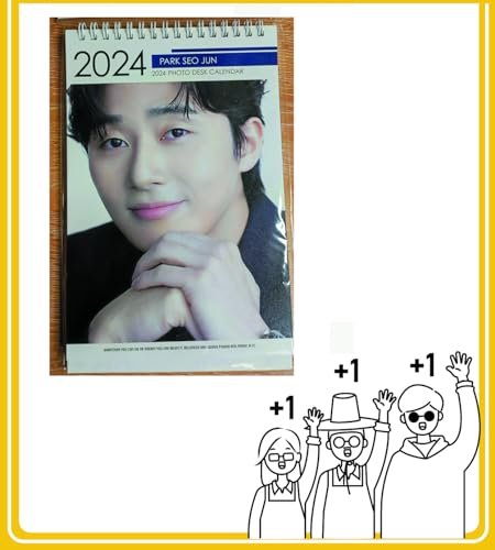 Calendario 2024 con fotos de Park Seo Jun y adhesivo Netflix Kpop Kstar Gyeongseong en español.